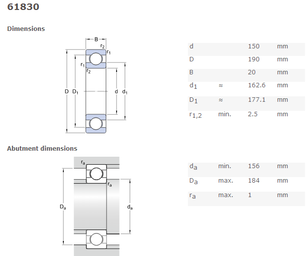 FAG DEEP GROOVE BALL BEARING 61830